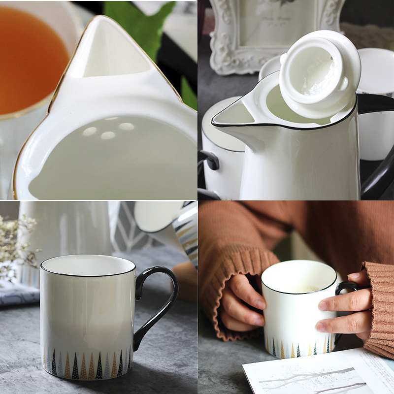 Nordic water set bone china cup light luxury cold kettle set water cup European style home living room tea cup tea set