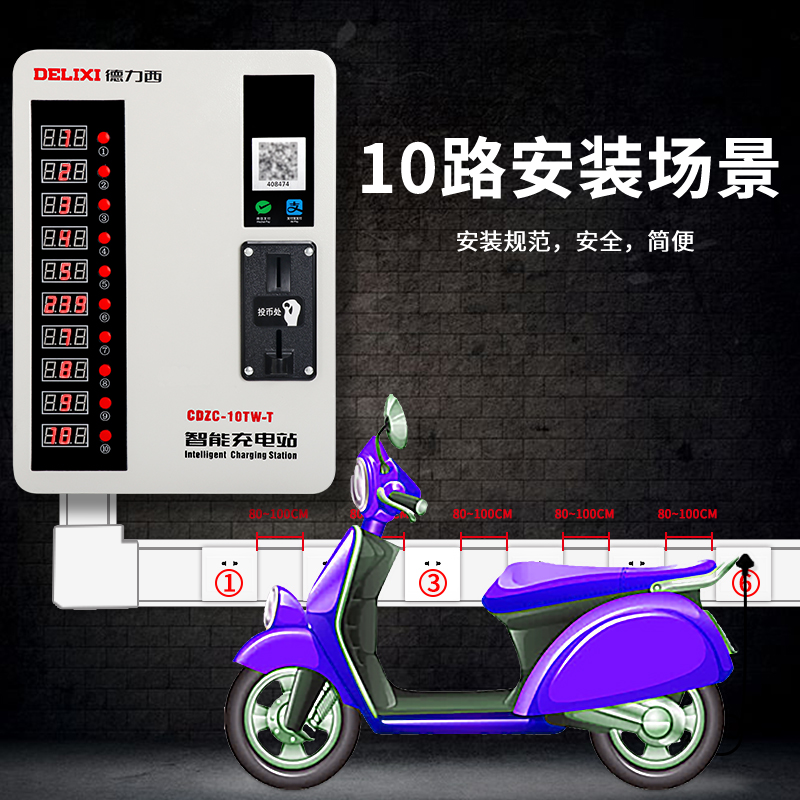 Delixi battery car charging pile scan code coin intelligent community outdoor rental housing 10 road electric vehicle charging station