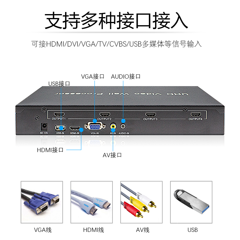 Spot 4K LCD TV splicing box 1 in 4 out HDMI control processing video screen multi-screen splicer