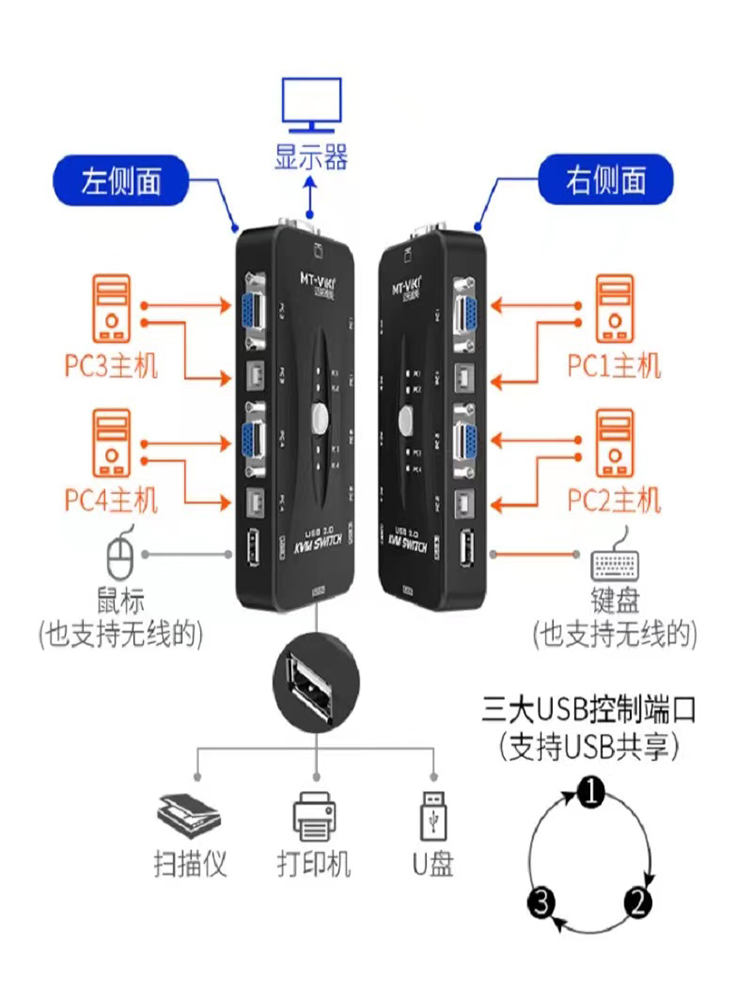 The new Matuo MT-401UK-CH 4 port manual VGAKVM switch 4 input 1 out of multiple computer sharing