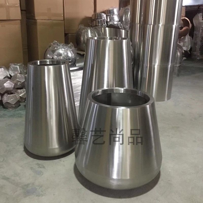 Stainless steel flower pot Metal paint vase ornament Modern decorative green plant floor-standing drum-shaped flower device