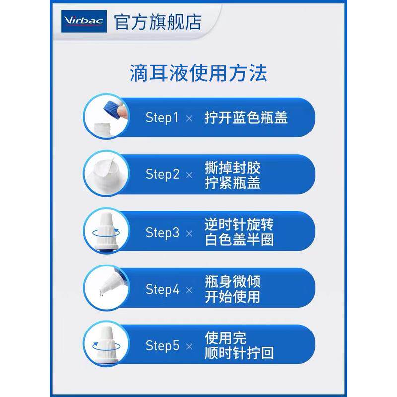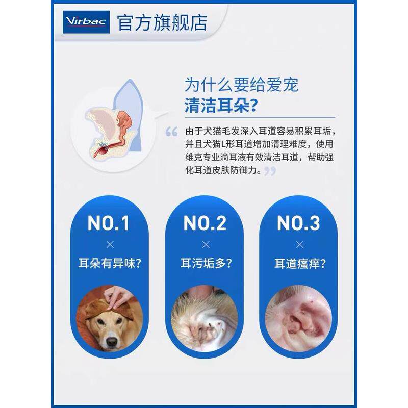 Genuine goods French Virbac Vic Dog Cat Ear Canal Clean Ear Bleach 125ml Prevention Ear Mite Canine Cat Universal