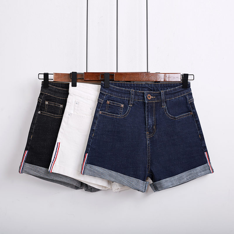 Korean Version High Waist White Denim Shorts Woman 2022 Summer elastic large size Size Hot Pants Loose slim a character wide leg pants