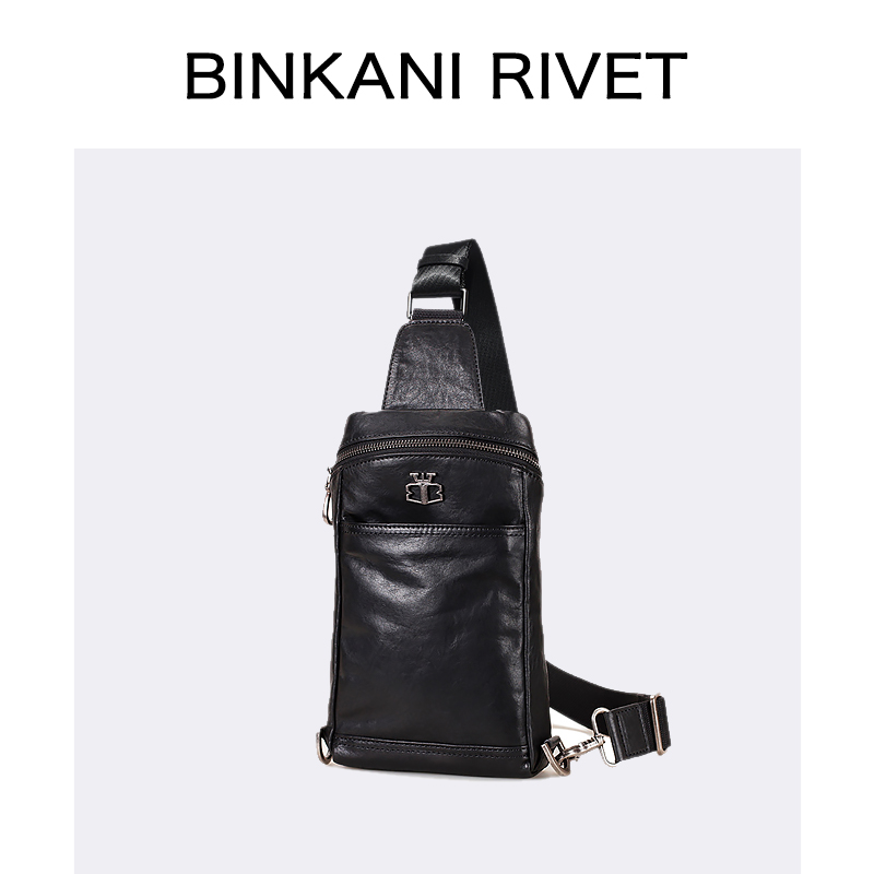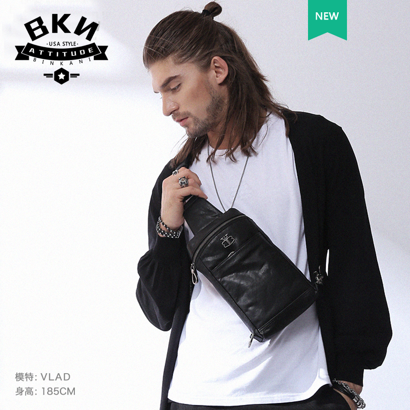 French binkani chest bag men's tide brand chest bag leather backpack single-shoulder messenger bag men's first layer cowhide casual