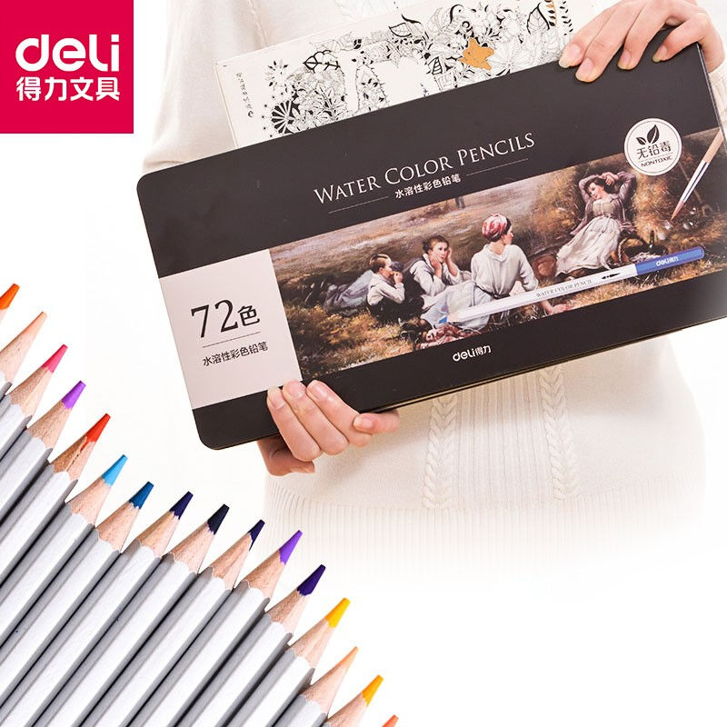 Powerful 48-color water-soluble color pencil professional hand-painted students with color pencil painting set 12-color beginner art students children's painting brush stationery set water-soluble color core oily brush