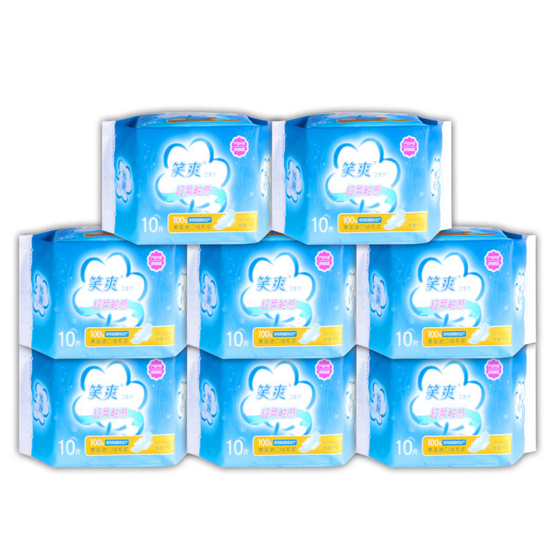 Smiling and sanitary cotton nurturing girls ultra soft and skin-friendly imported fluff pulp 245mm daily cotton soft and delicate 10 pieces 8 packs