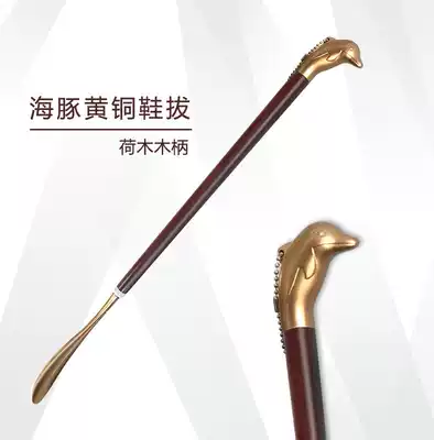 Dihua Star Dolphin copper-coated metal shoehorn Ultra-long handle shoe holder Gift copper-plated solid wood shoe horn