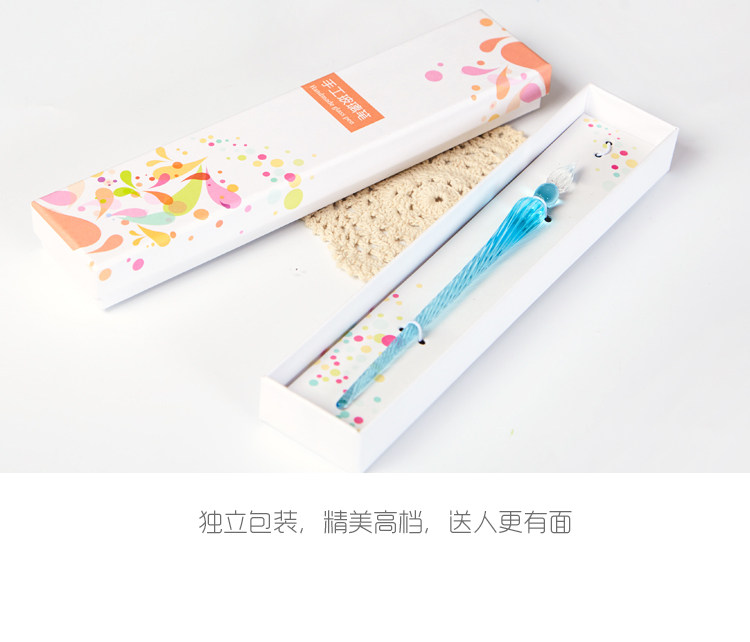 Delicate gift boxed hand made sparkling glass pen colour ink dip pen colour ink test pen