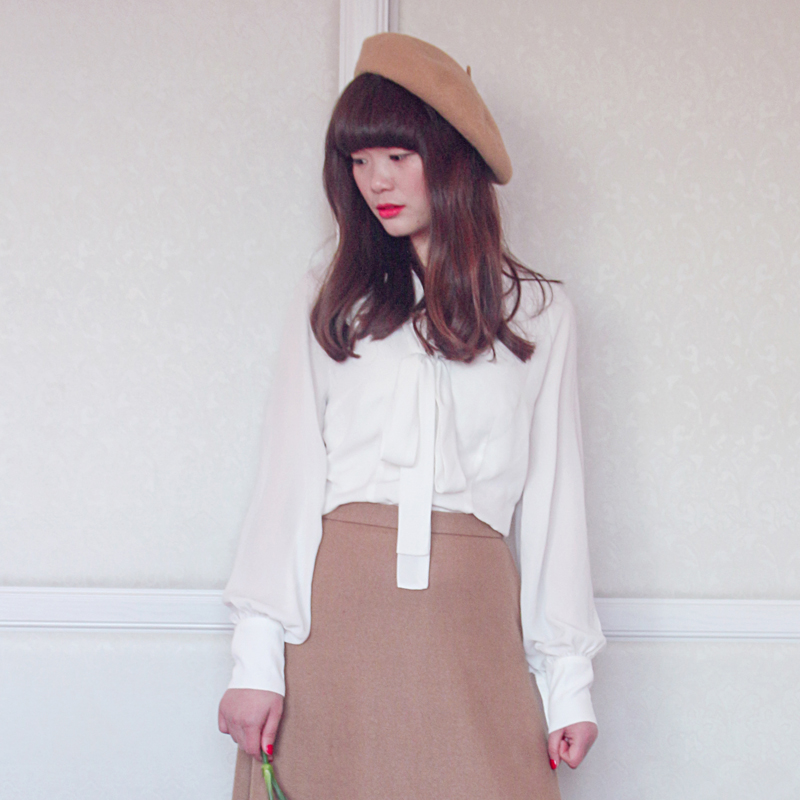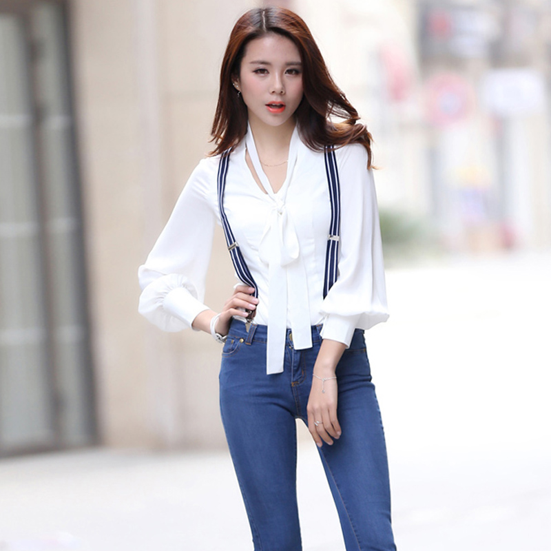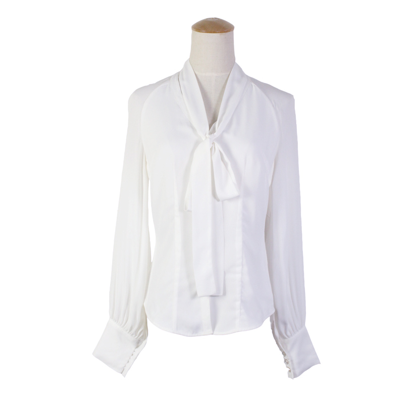 Shirt Lady Sleeve 2022 Spring and Autumn New Retroit Lantern Sleeve V collar with a dimensional white Chispun tops