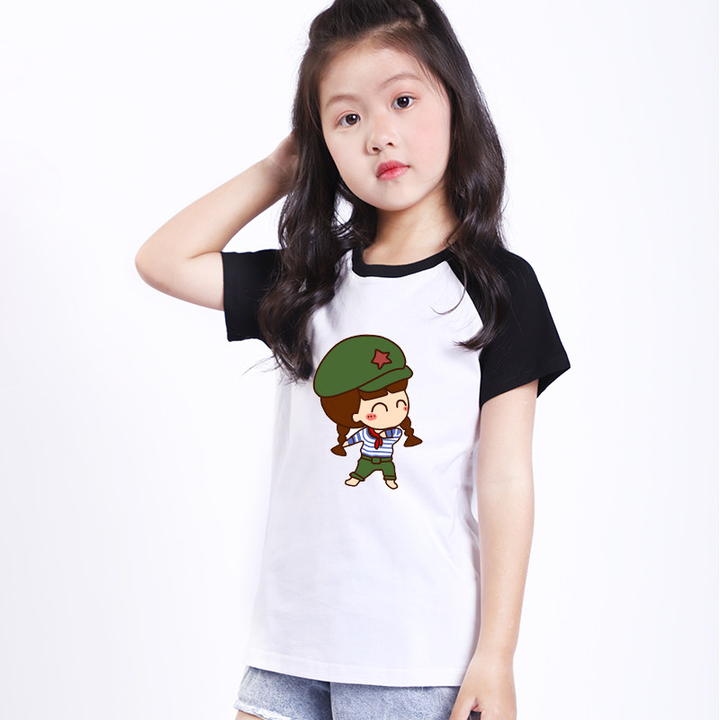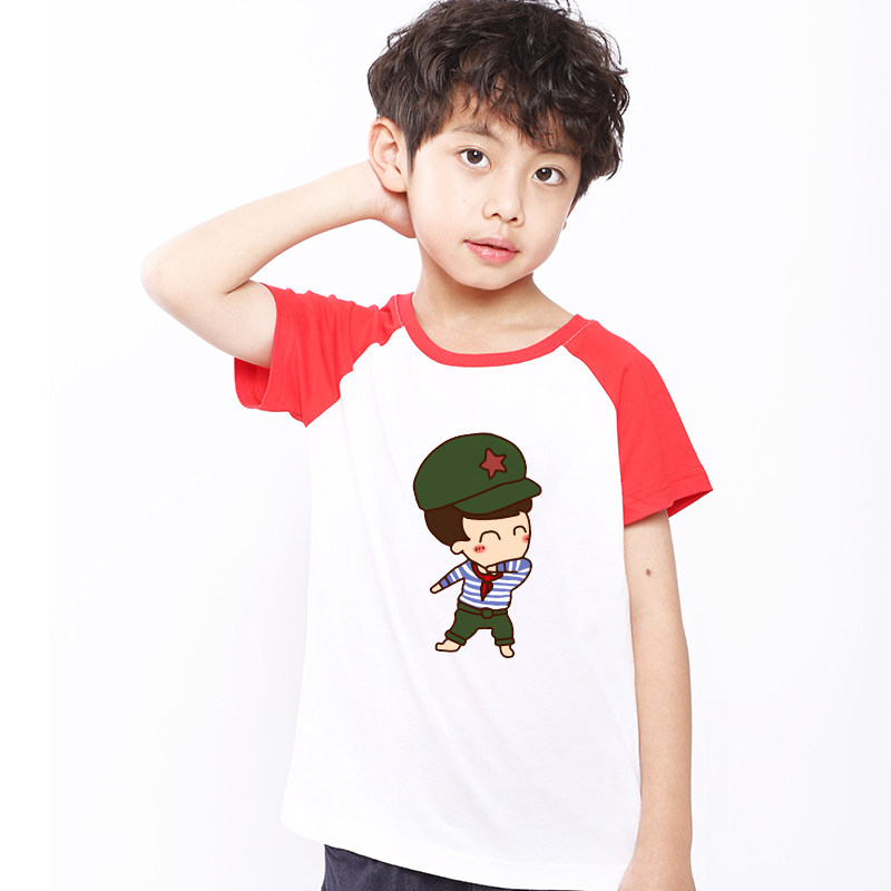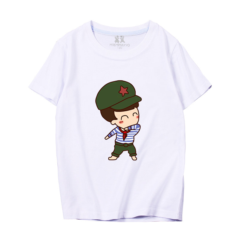 Children's Clothing 2021 New Red Army Festival Clothing Clothes for Boys and Girls 3 - 8 Years Old Children's National Day T - shirt is loose short sleeves
