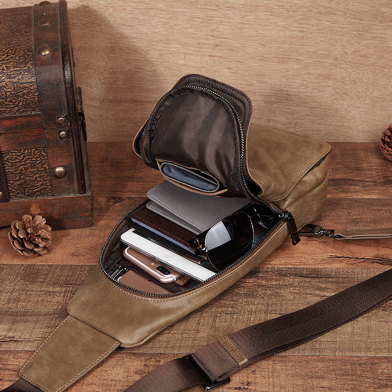 New men's bag breast bag men's leather sports fashion trend outdoor casual one-shoulder cross-body front layer cowhide bag