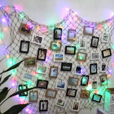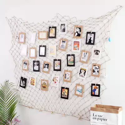 Creative fishing net photo wall Mediterranean retro bar wall decoration hemp rope clip Postcard message wall hanging