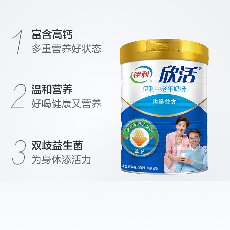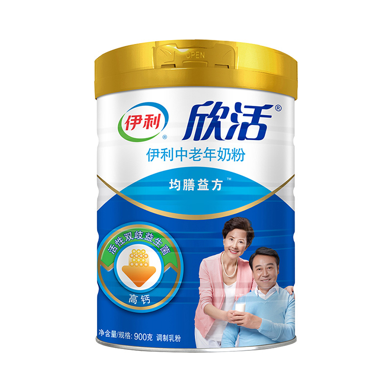 Yili high calcium middle-aged nutrition milk powder 900g can Xinhuo adult cow milk powder official
