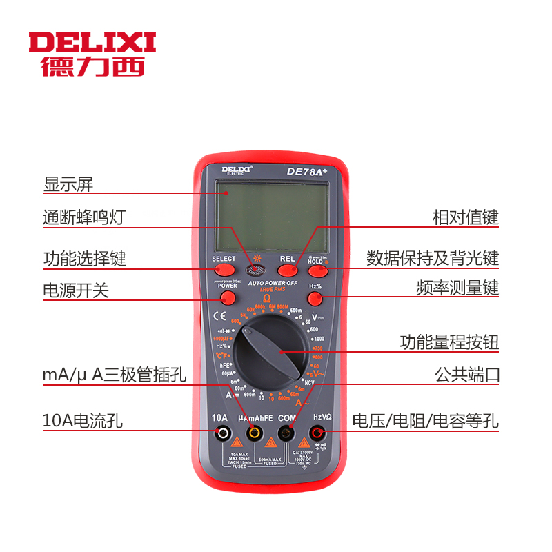 Delixi multimeter digital display high-precision thermometer multimeter digital anti-burning backlight DE78A
