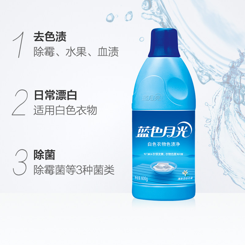 Blue moon bright blue moon light white clothing bleached water 600g * 2 bottles of colour stains clear of bacteria colour bleach to yellowish