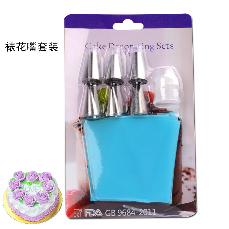 Baking tool set 6 stainless steel decorative nozzle silicone cloth decorative bag converter can be used as cookie milking oil