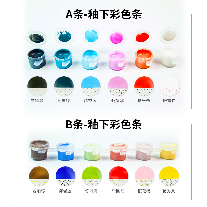 A strip white strip underglaze color B strip yellow strip underglaze color underglaze color A color bar + B color bar