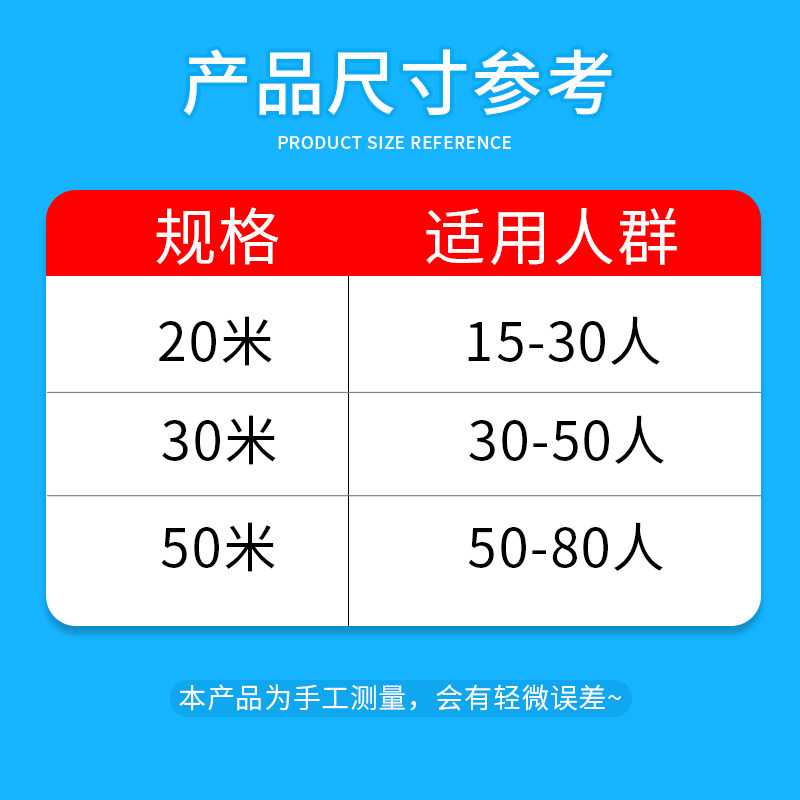 30 people with 20 meters power ring storage bag 50 people with 30 meters power ring storage bag 80 people with 50 meters power ring storage bag 20 meters storage bag gloves 30 pairs 30