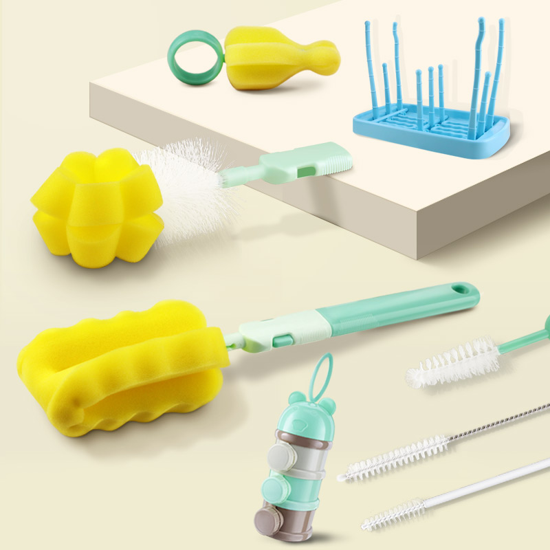 Bottle brush Baby wash bottle brush Pacifier brush Straw brush Cleaning cleaning brush Sponge set 360 degree rotation