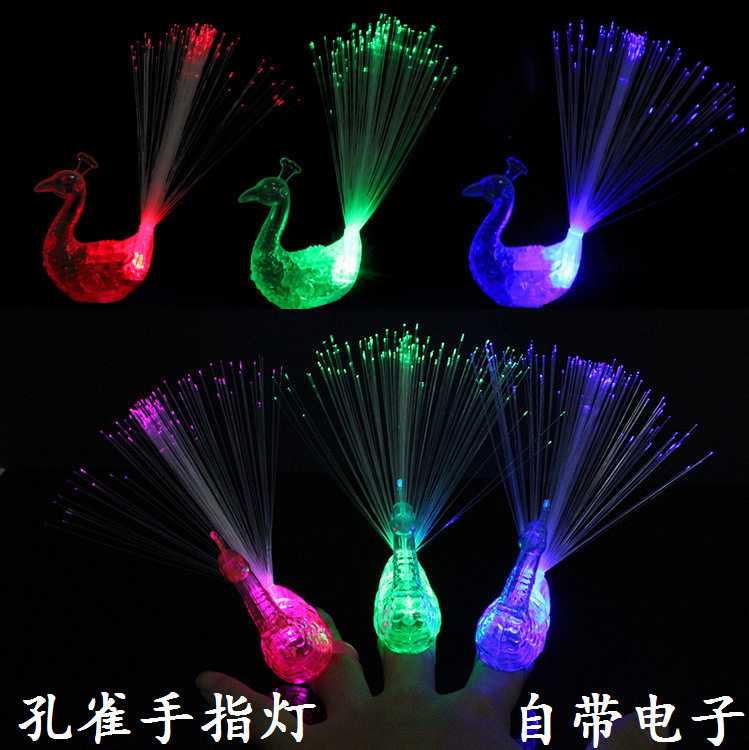 Peacock Finger Lamp Gift Luminous Peacock Open Screen Fiber Optic Lamp Children's Street Stall Night Market Supply Luminous Toys Batch