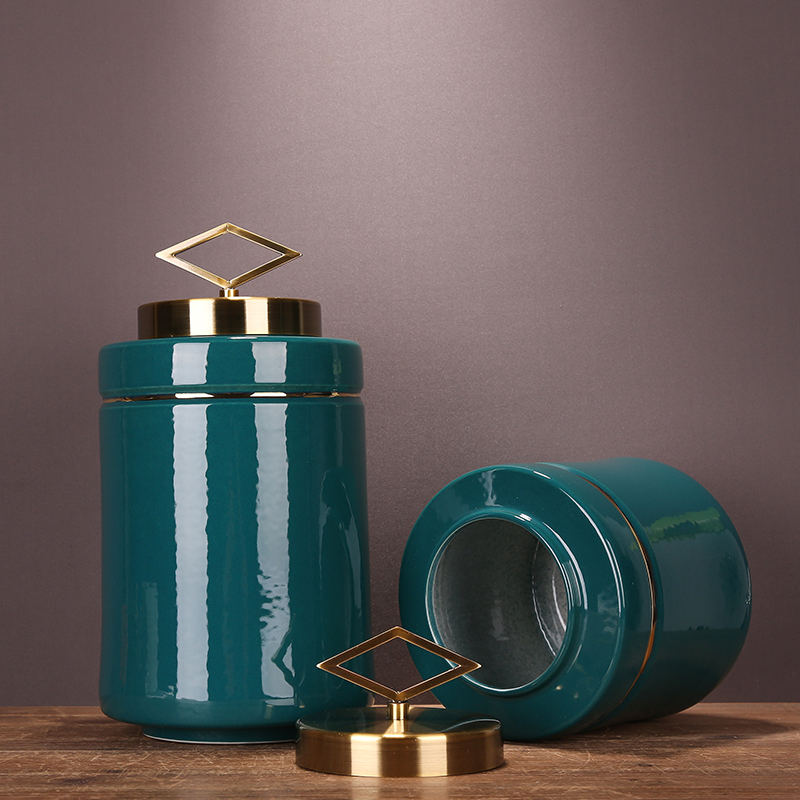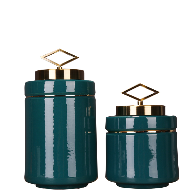New Chinese Xuan Guan Cabinet Swing Piece Ceramic Jar Storage Jar Book Room Living-room-Style Board Room Display Case Softfit Ornament