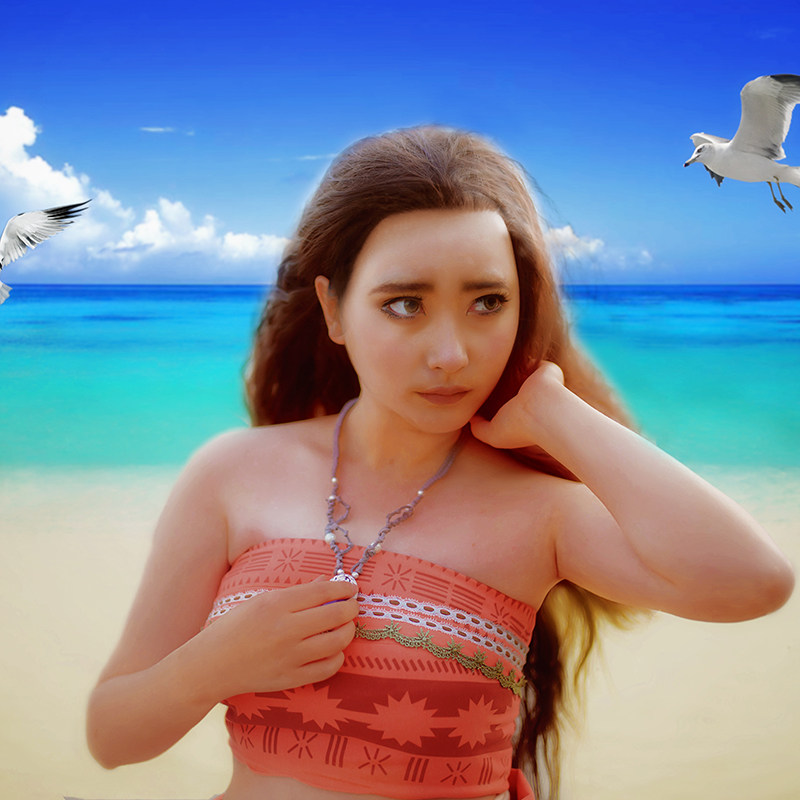 Manles in the sky Ocean Romance Moana adult costume cosplay necklace dress skirt 3529