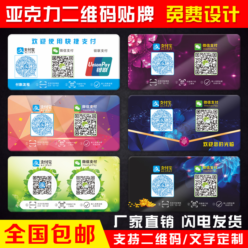 Acrylic two-dimensional code sweep code payment ID card collection silver counter WeChat Pay UnionPay UnionPay with prompt card