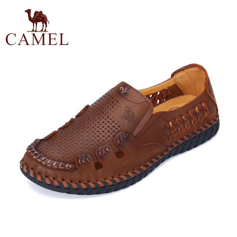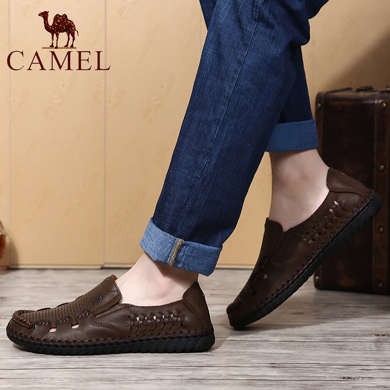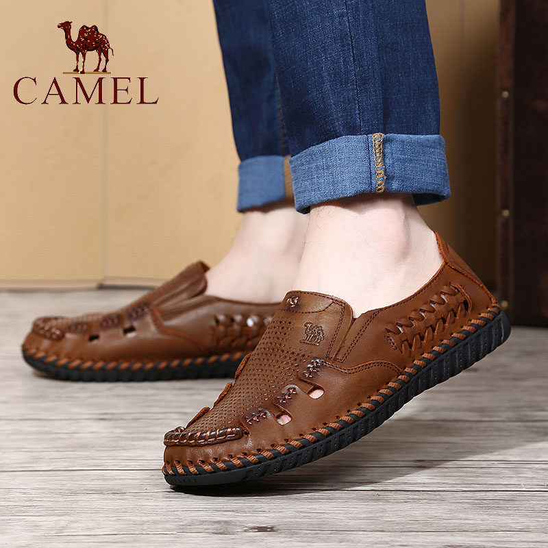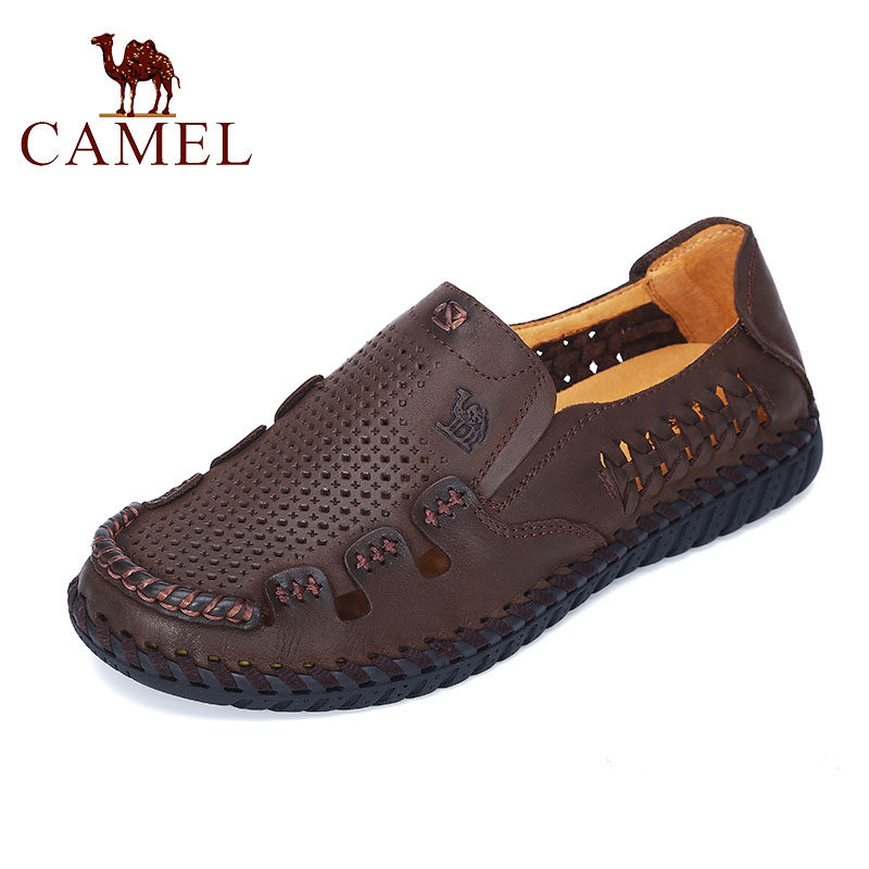 Camel camel men's shoes 22 summer new leather breathable sandals leather comfortable perforated beach shoes