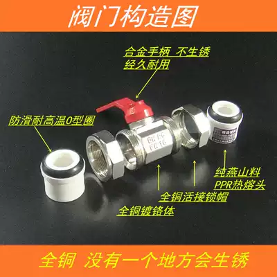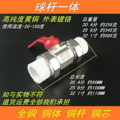 Club integrated PPR copper ball valve all copper water valve 4 6 points Double Hot melt valve switch accessories 20 25 32