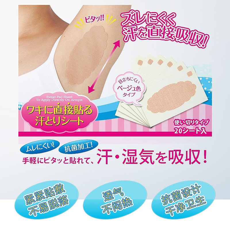 Japanese underarm sweat paste men and women sweating paste armpit deodorant sweatproof sweating pad adult sweat towel 20 pieces