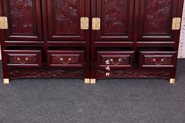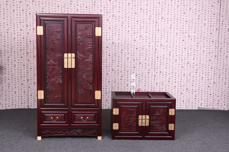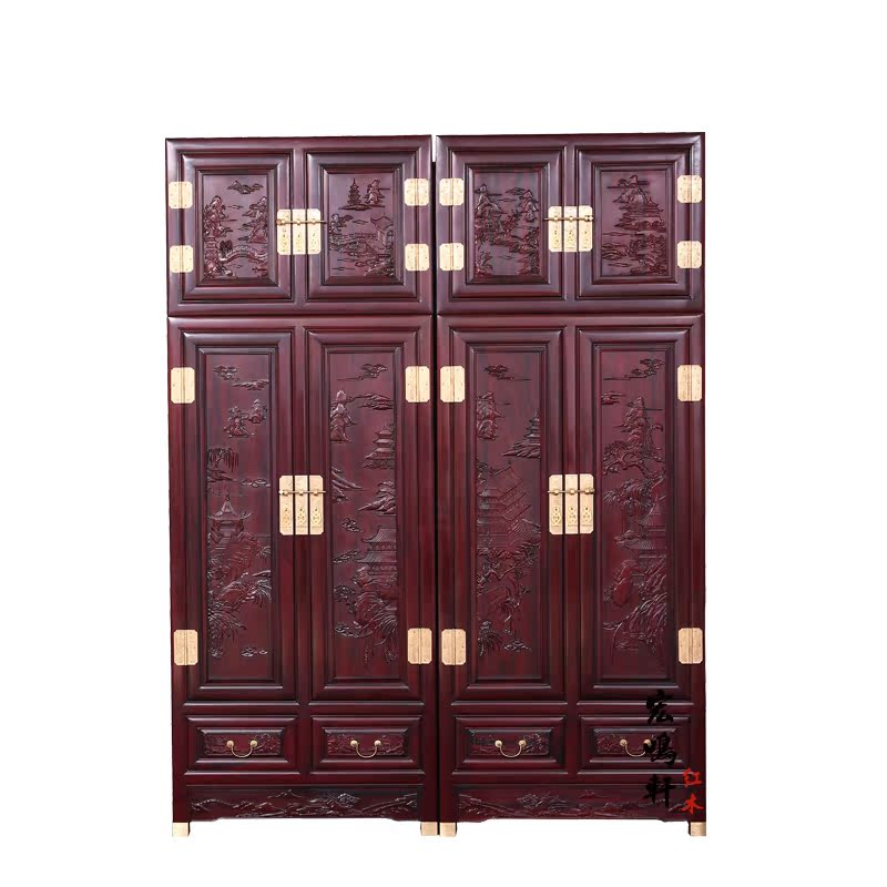 Mahogany furniture Ming and Qing classical solid wood antique wardrobe Chinese wardrobe storage cabinet South American rosewood landscape top box cabinet