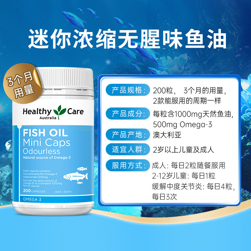 HealthyCare Deep Sea Fish Oil Softgels Australian Fishy Cod Liver Oil Middle-aged 400 200 Omega
