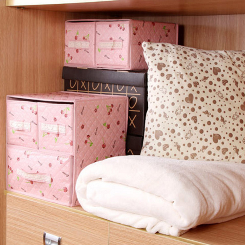 Korean fabric multi-layer socks bra underwear storage box divided into two layers three-drawer type storage box household with cover