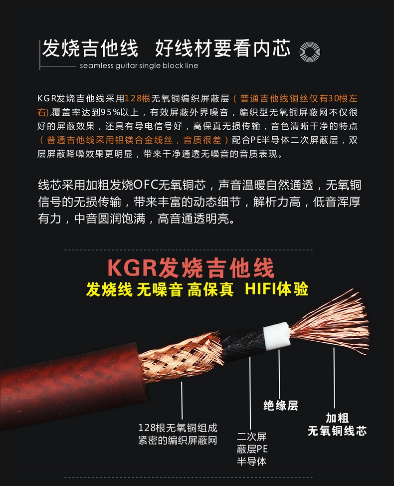 KGR electric guitar bass connection wire speaker effecter fever instrumental line stretch spring wire telephone line