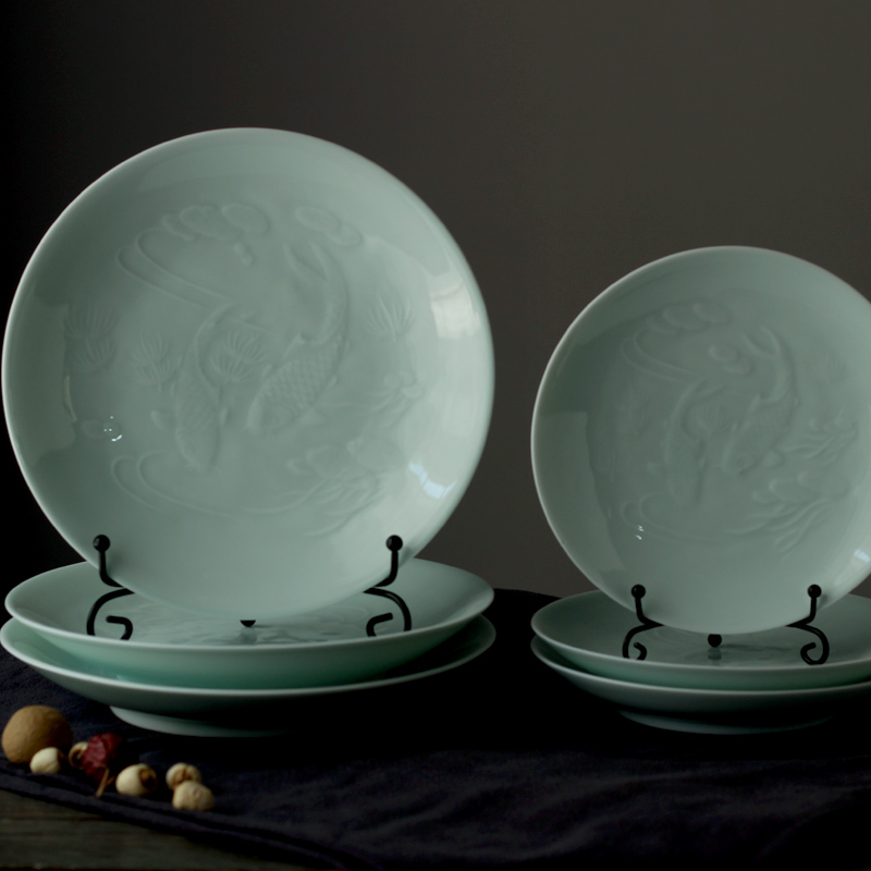 Shadow celadon underglaze color anti-scalding deep plate western plate steak plate dessert flat plate cake plate ceramic bone plate