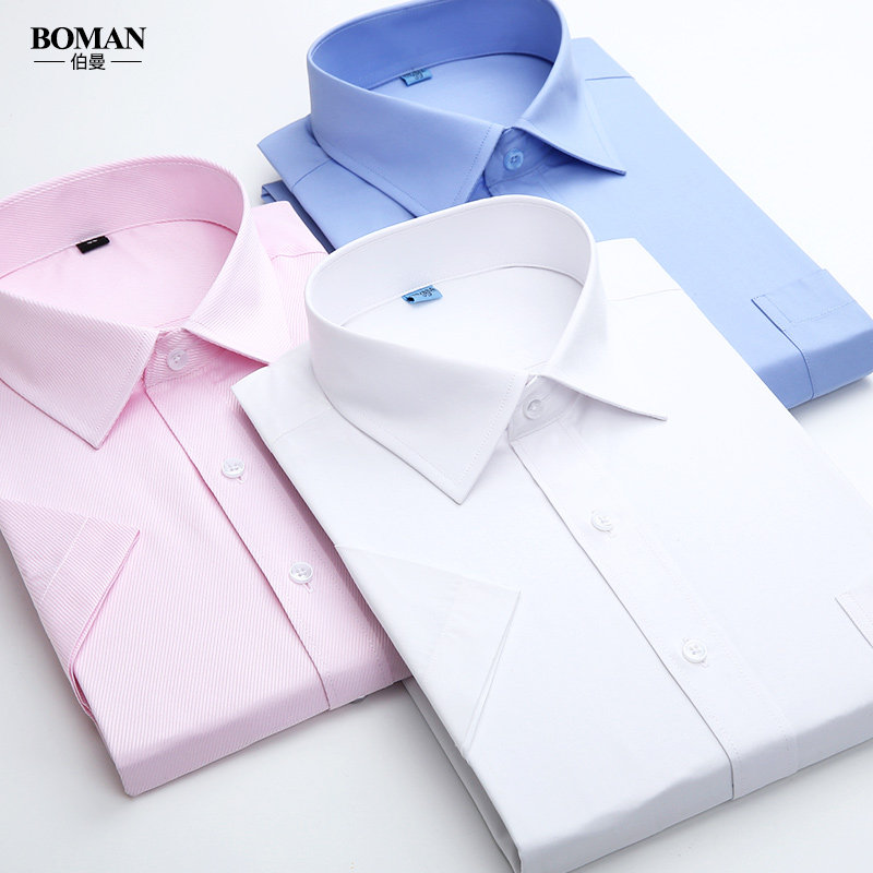 Berman summer thin short-sleeved shirt young man business professional frock purple white shirt groom wedding best man
