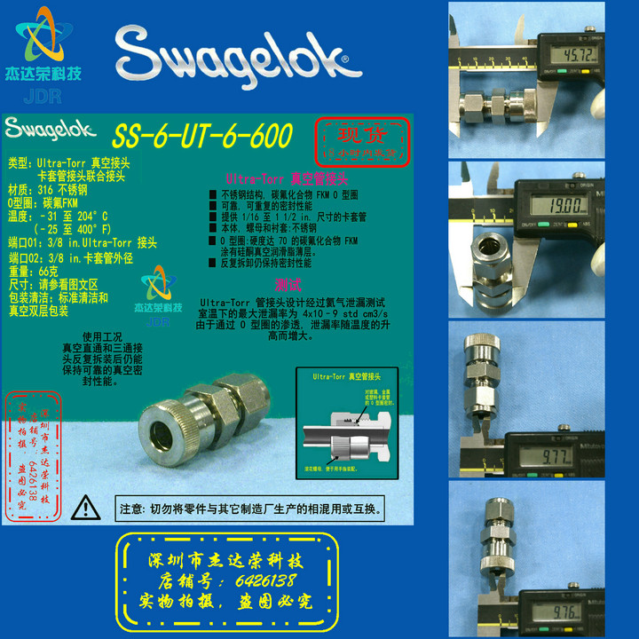 (SS-6-UT-6-600) Swagelok sei Weiloc vacuum joint 3 8in x3 8 in cutting sleeve