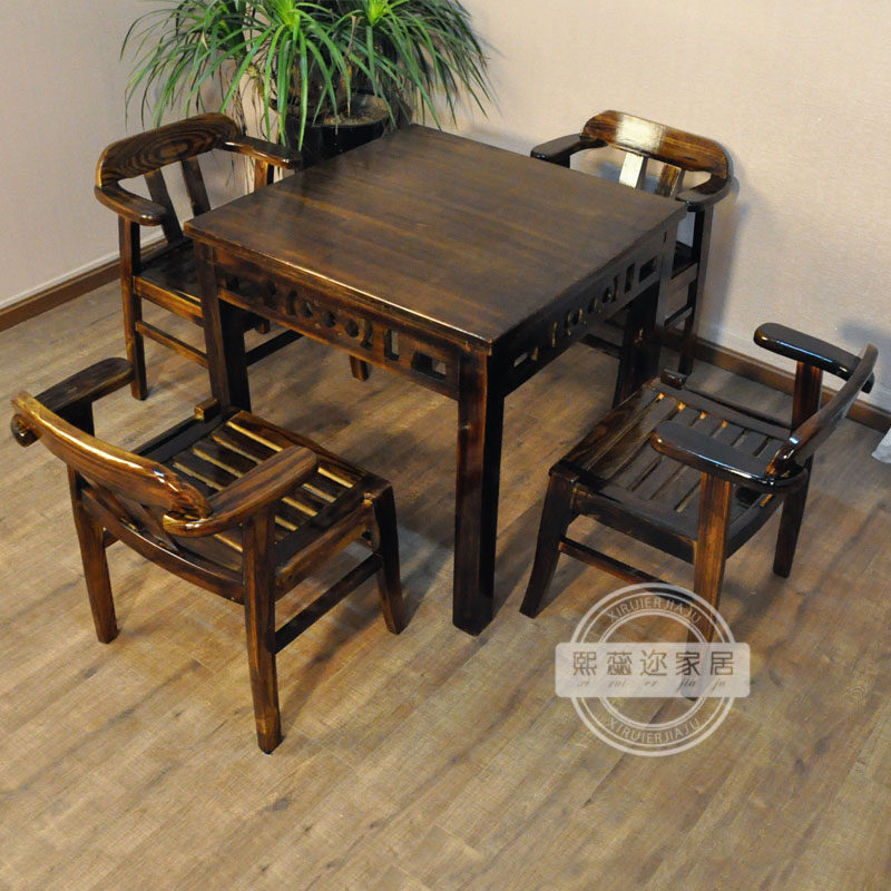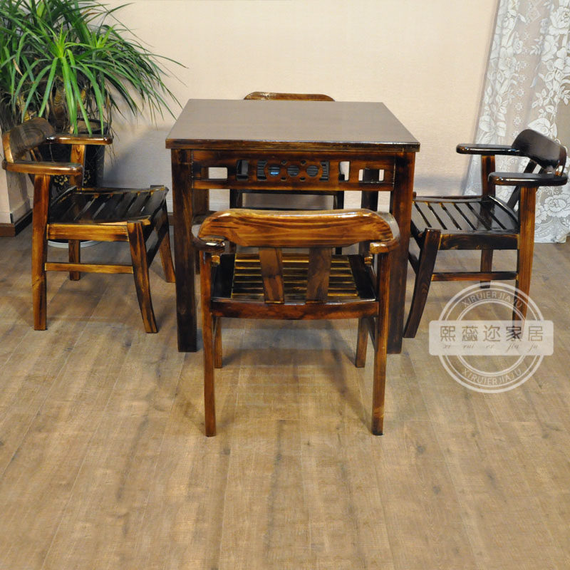 SF square table Solid wood carbonized fire wood Chinese dining table and chair combination Eight Immortals table Antique dining room dining table