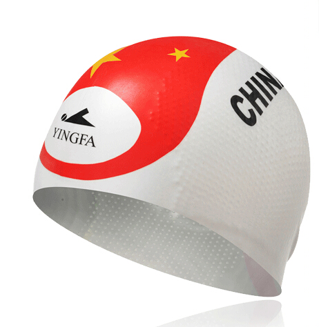 Yingfa inner particle wrinkle-free non-slip silicone printing big national flag swimming cap men and women adults and children general
