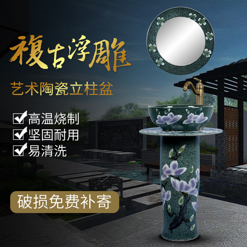 Ceramic Washbasin Integrated Basin Balcony Washbasin Garden Wash Basin Garden Wash Basin Floor Upright Post Basin Creative Table Basin