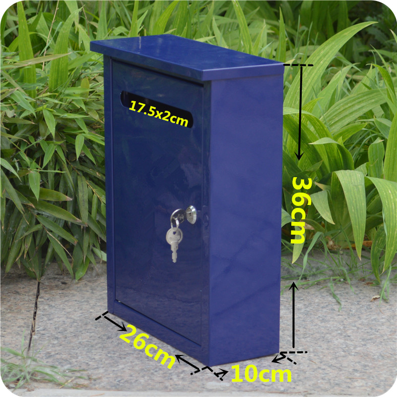 Promotional wordless blue door throw mailbox Outdoor wall-mounted suggestion box with lock Newspaper box Letter box