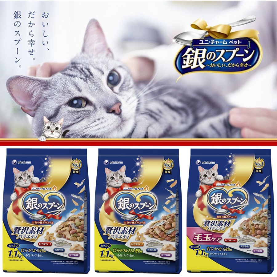 Made in Japan Original imported silver spoon cat food Full stage hair low fat seafood feast dried fish 1 1kg