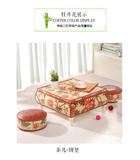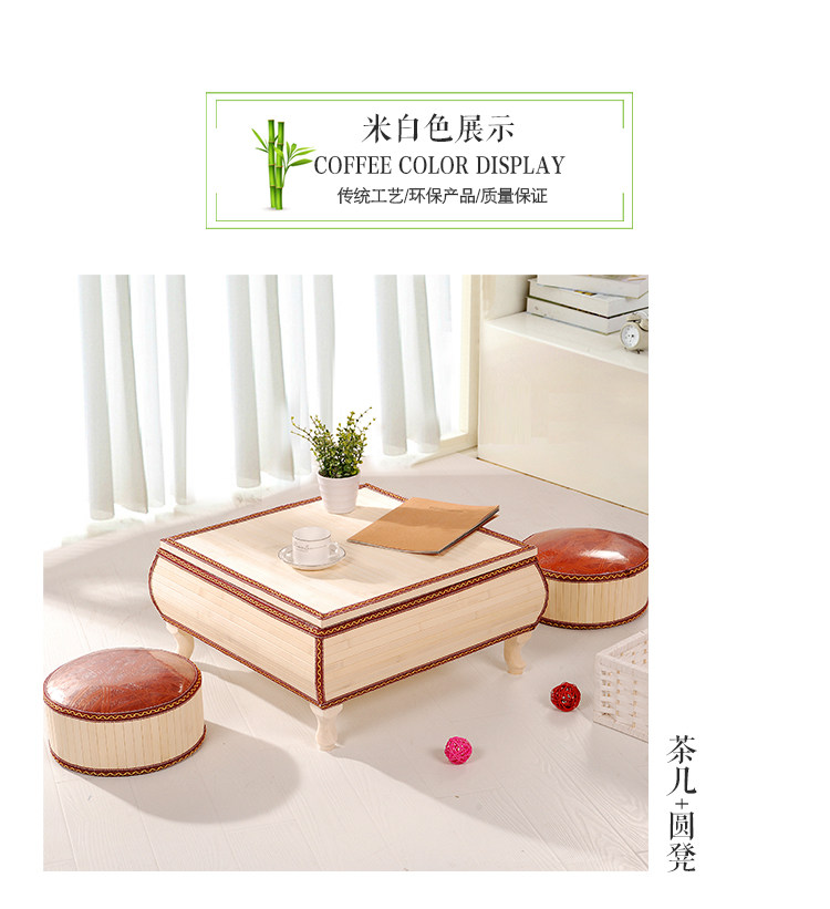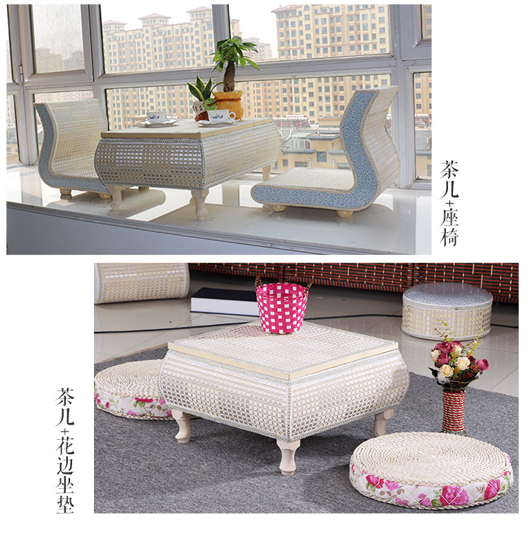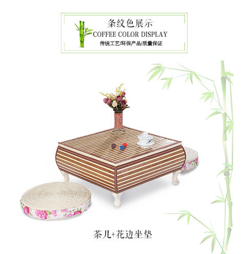 Grass-woven bamboo chic-style solid wood floating window table small tatami tea table window short square pit table floating window table tea table-Taobao