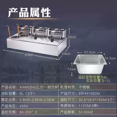 Commercial three-in-one electric fryer noodle cooker Kwantung cooking thickened stainless steel Fryer Fryer spicy hot machine