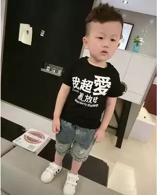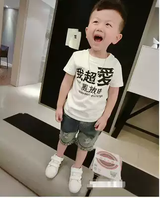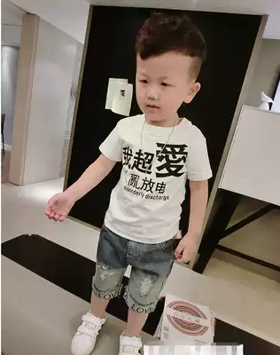 Children's cotton T-shirt set 2 baby base shirt 3 boys denim shorts 4 Summer 5 little boy hole hot pants 6 years old