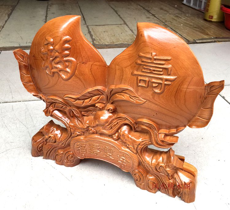 Fattening Peach Wood Shou Peach Wood Carving Mercy for Elderly Birthday Gift Fu Suo Double Full Birthday Gift