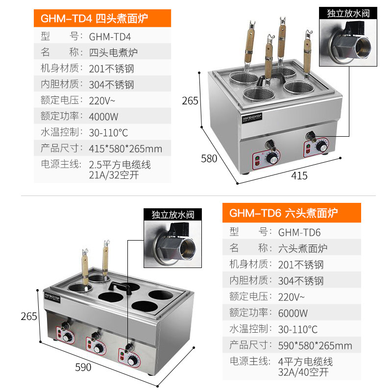 Double Head Economy Section Double Head Luxury Style Four-Head Cooking Noodle Stove Six-Head Cooking Noodle Stove