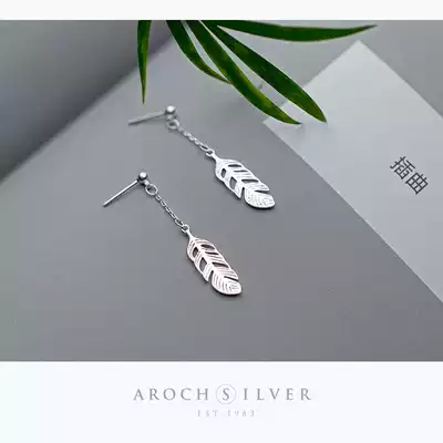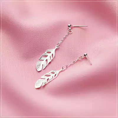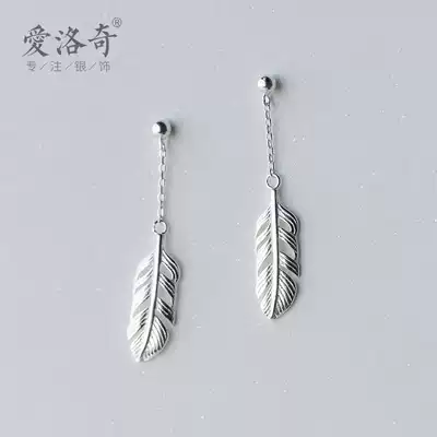 Love Rocky s925 silver feather earrings ladies Korean version of Mori sweet temperament simple short personality earring jewelry