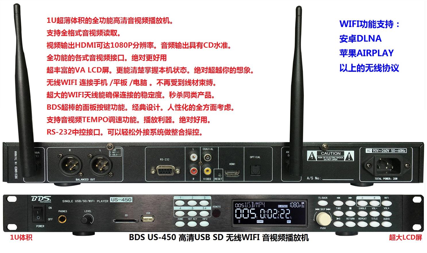 BDS US 450 HD USB SD WIFI plug-in CD drive 1080p rack full format audio
