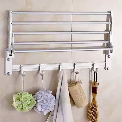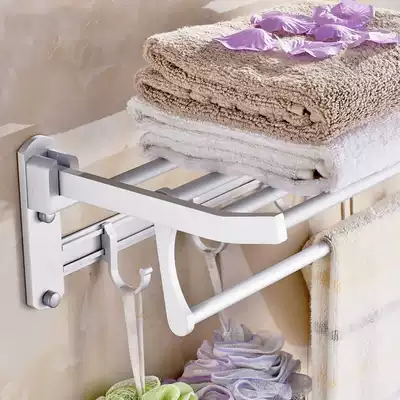 Space aluminum punch-free bath towel rack towel rack rack folding activity bathroom towel bar hardware wall hanging
